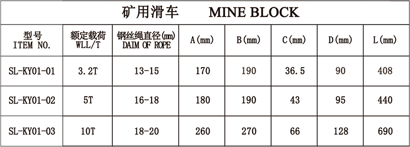 1、开口设计,方便挂钢绳。 2、侧板内侧有钢丝绳防脱装置,可以满足并下工作需求。 3、体积比国标起重滑车小,井下移动方便。